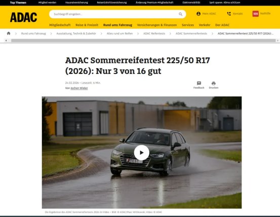 Dry braking distance: 36.2 m, rated “Stärke” by ADAC